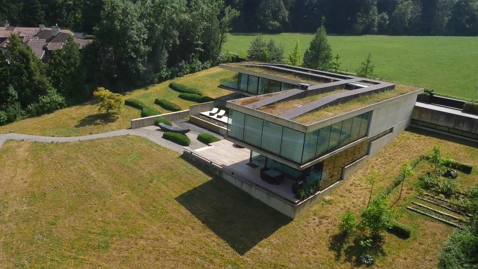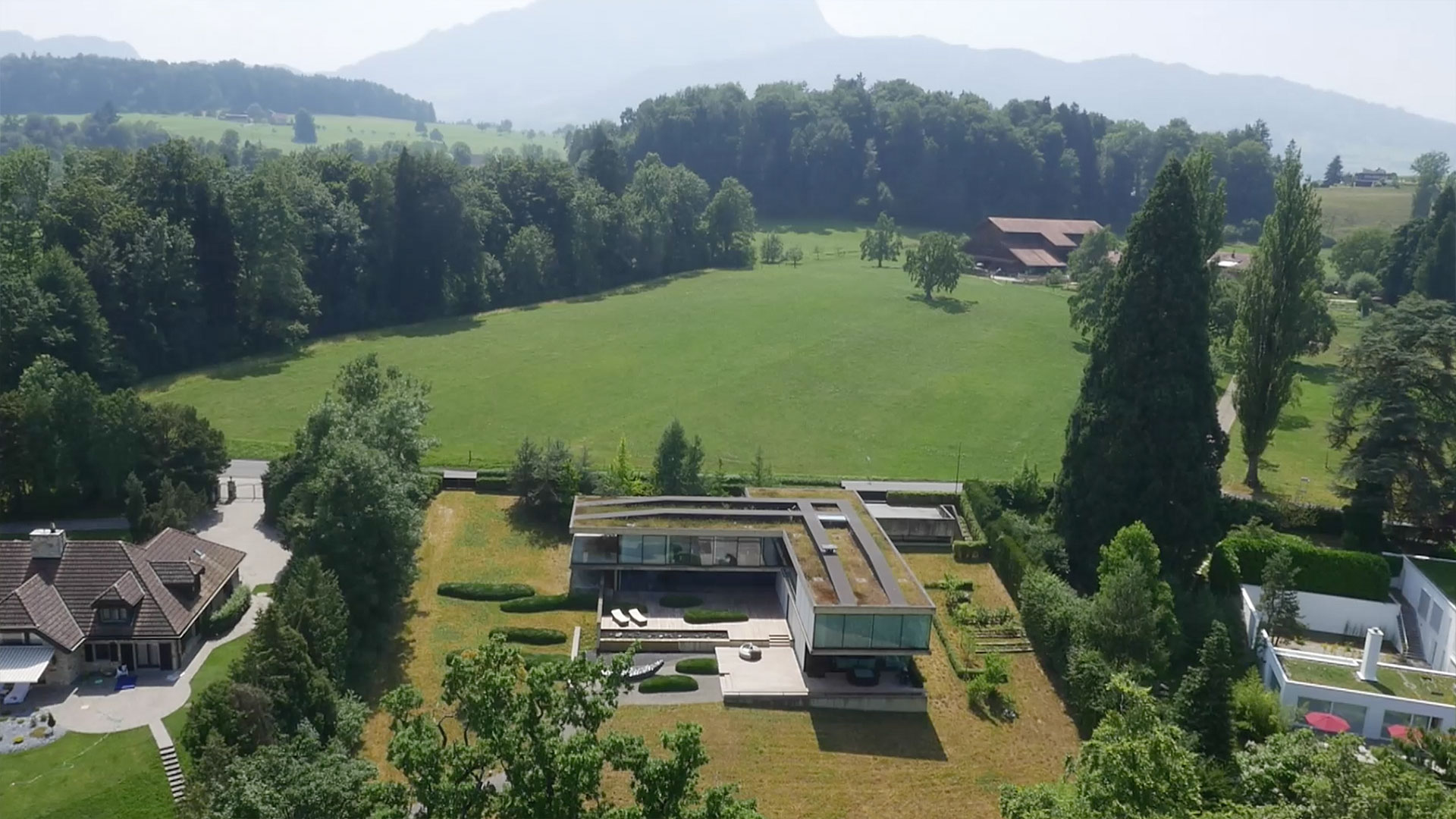 Unmittelbar am Vierwaldtstättersee in St. Niklausen gelegen, baute die Gebr. Amberg Bauunternehmung AG im Auftrag eines privaten Bauherrn diese grosszügige Villa. Konzipiert wurde sie vom Architekten Daniele Marques und seinem Team. Bautechnisch stellte der ausladende Gebäudekörper, der ohne Säulen, aber durch die statische Konstruktion über dem Dach gehalten wird, eine spezielle Herausforderung dar.